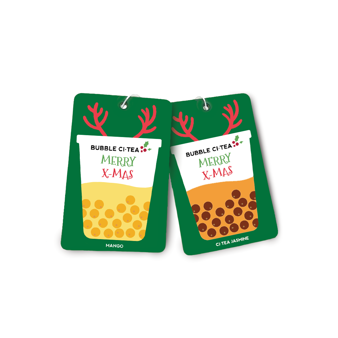 Bring the delightful aroma of Bubble CiTea to your car or any small space with our hanging air fresheners! Designed in a convenient card format, these air fresheners come in a pack featuring one of two irresistible scents: Jasmine or Mango. Each pack is randomly selected, adding a fun surprise to your order. Perfect for adding a sweet, seasonal touch wherever you hang them!